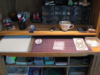 Welcome. What a lovely tidy craft area. Nice big cup too for the essential brew when you are crafting. Tracy Evans x