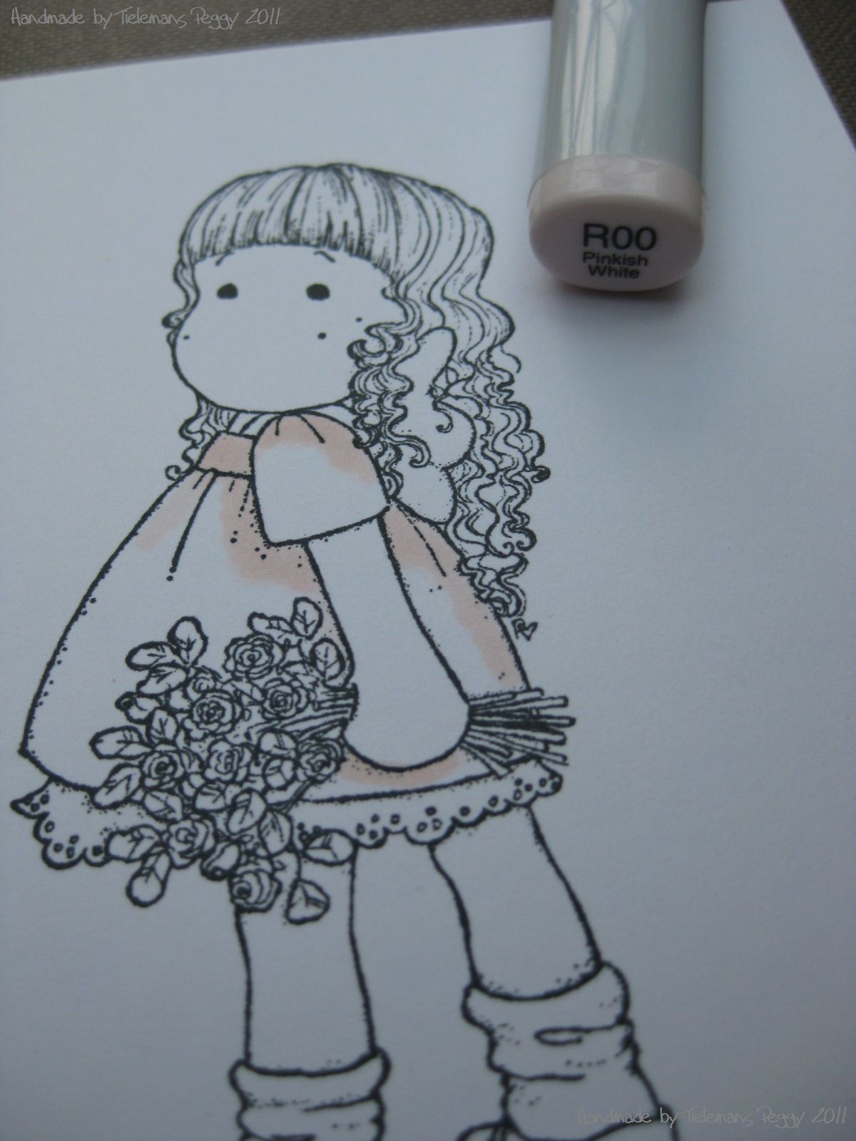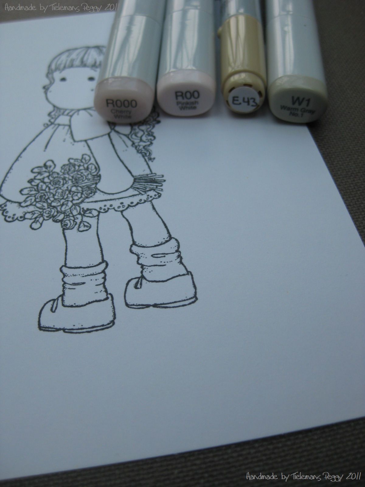 Ofcourse you need your Copics, I'm using R000, R00, E43 and W1. You can create a vintage look with diffrent colours, but I advice you to use very bright colours ... with lots of "0. B000, B00 or V000, V00 is also fine.